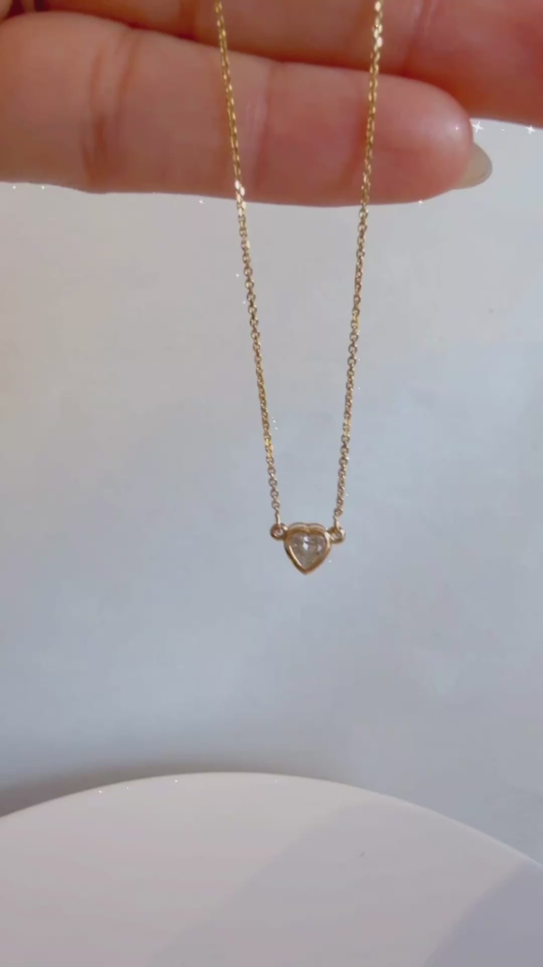 Diamond, lab grown heart bezel pendant on 14k gold, 15"-16" adjustable