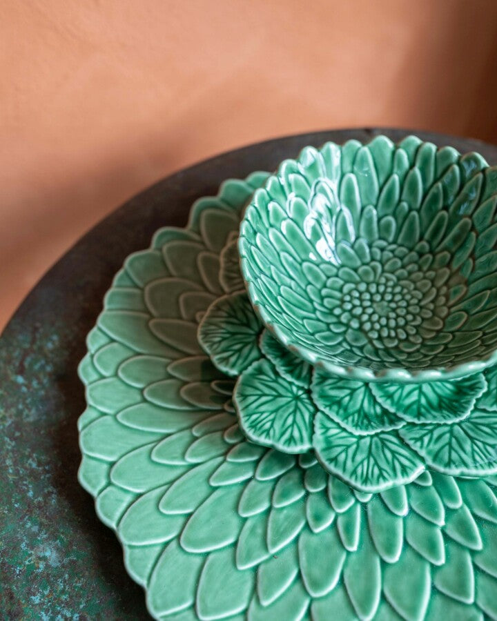 imagine serving a variety of fresh fruits or veggies in these bright-coloured flower bowls. combine them with the large bloom plates to form a feast of summery ceramics. bordallo pinheiro started designing ceramic tableware in 1884. since then his collections established themselves as an example of 19th-century portuguese cultural heritage. hence with these bowls, you are bringing a piece of art to your table! the bloom bowls are still cast in traditional moulds and are glazed by hand, following every petal. in close collaboration with bordallo, van verre extended the classic bordallo colour range. be joyful and combine contrasting colours for a playful effect.