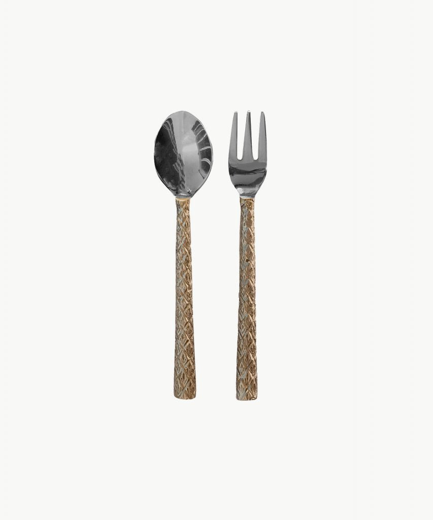 This dessert set is handmade in India. Due to the handcrafted nature of this item, expect slight variation in the appearance of each item. Perfect by no means, but unique all the more!