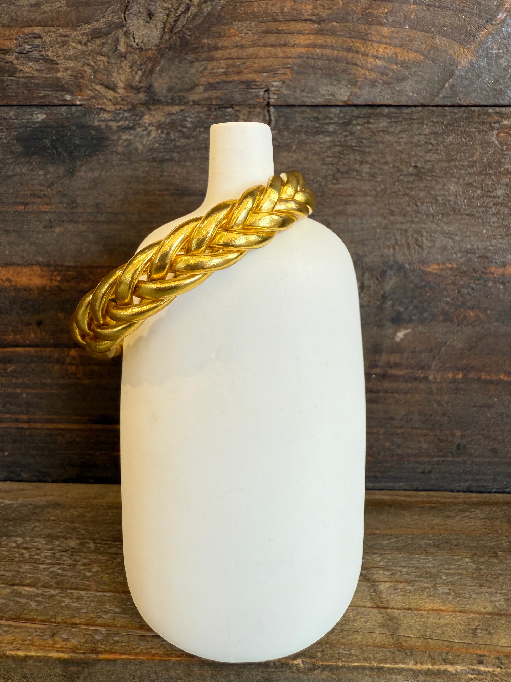 Prayer Bangles are rubber filled with vibrant gold leaf. The gold leaf blown through them is said to be reminders of our prayers and intentions.They have an authentically antiqued look and they're durable, flexible, soundless and won't weigh you down. Great for traveling since you do not have to remove them to pass through the pesky metal detectors. They're bright gold color looks like a solid gold bangle and feels even better.