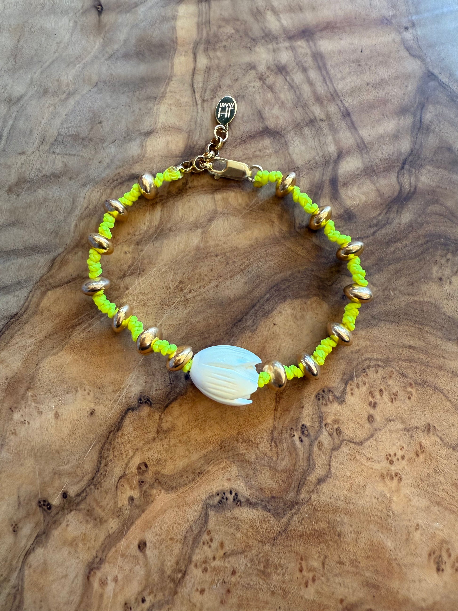 Hand carved vintage pikake bead on waxed cord with gold filled nuggets beads