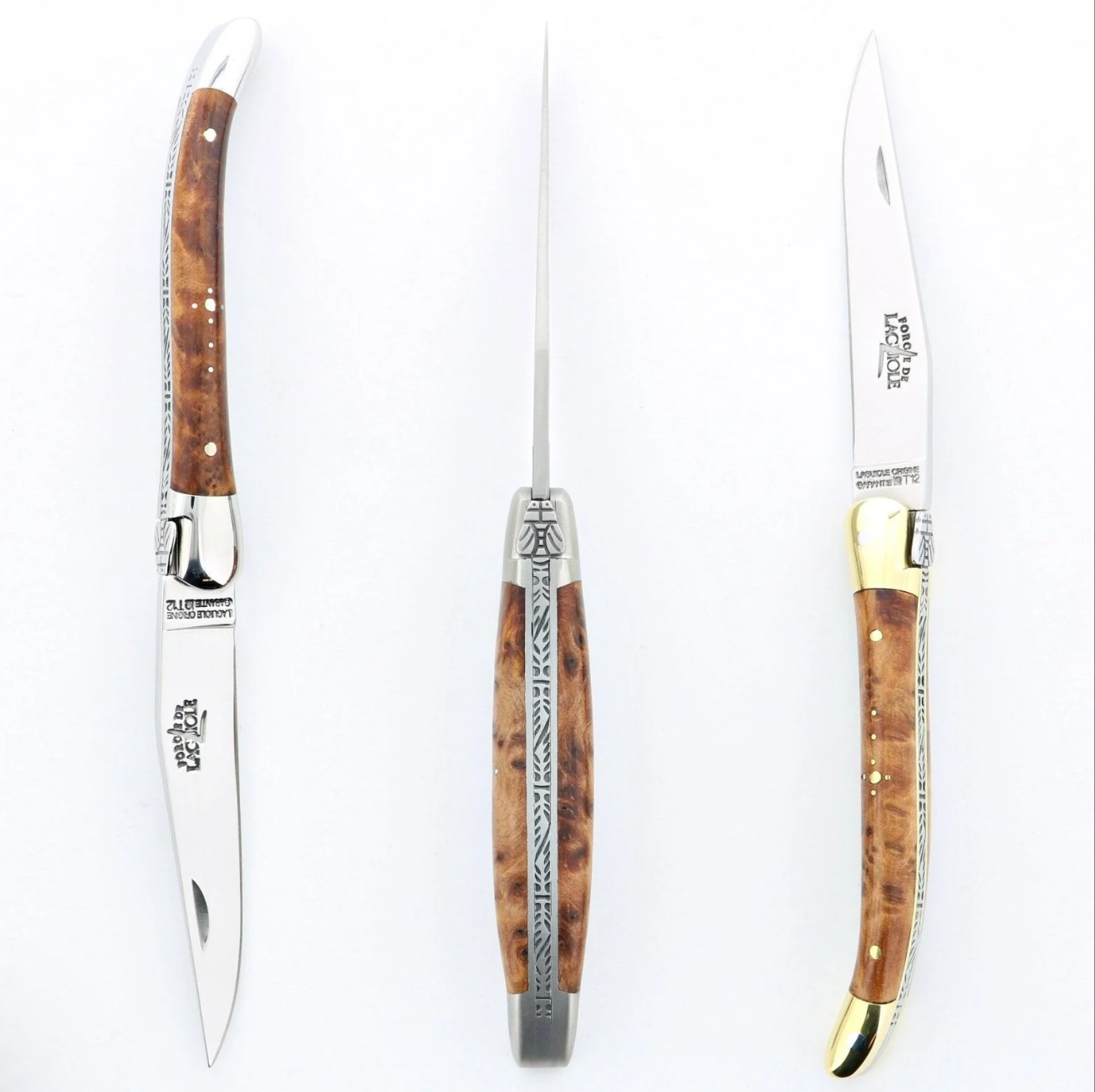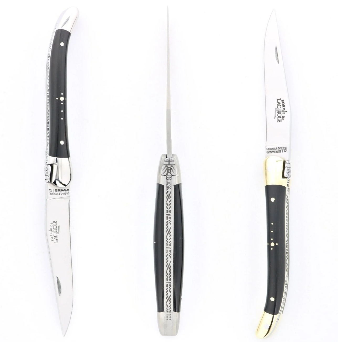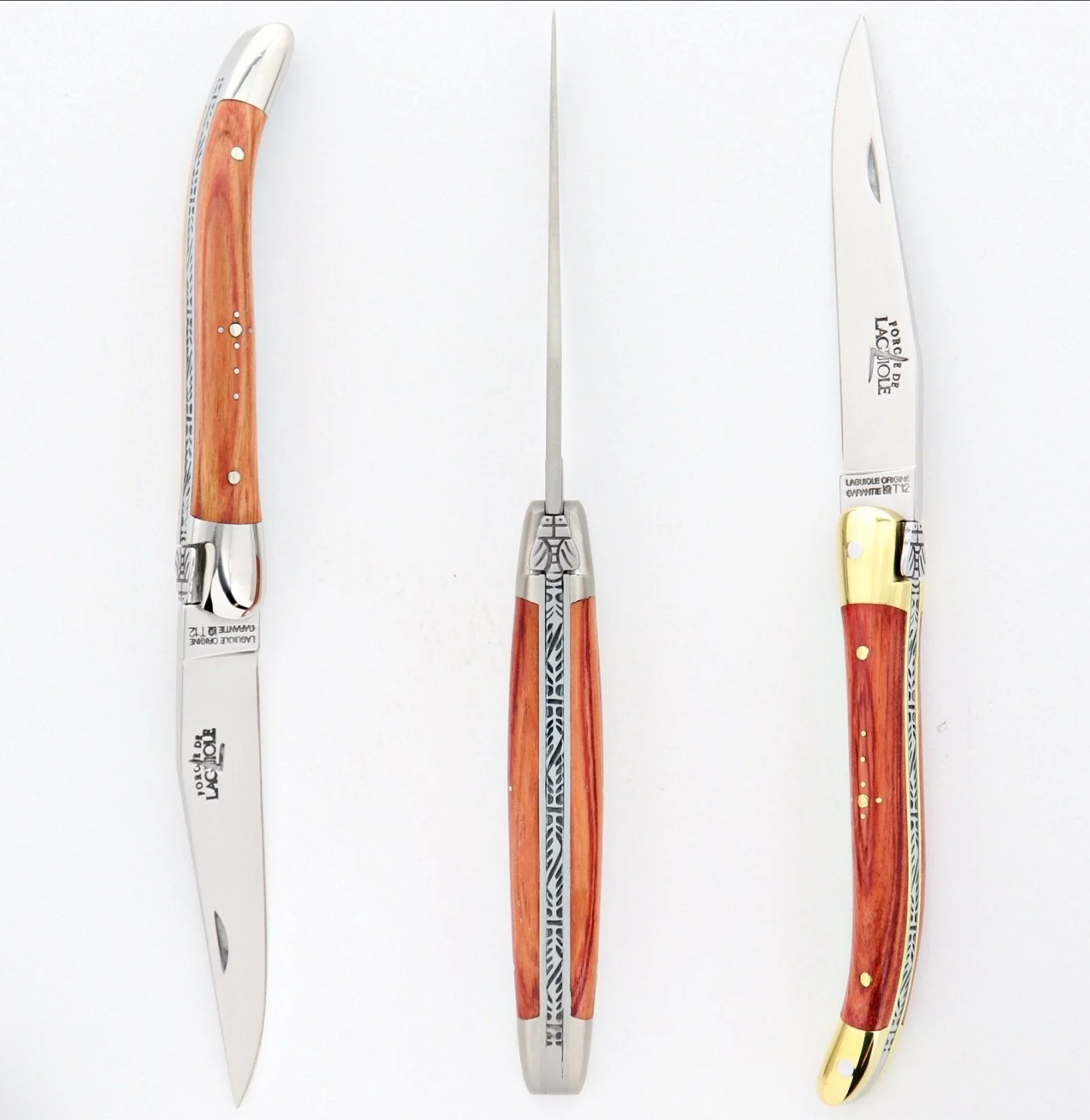Many Laguiole pocket knives from all most manufacturers, including Forge de Laguiole (7 cm knives) offer "soldered bees" models. Most Laguiole knives found on the market are solder bee models. The process of adding the bee to the spring by soldering it saves time and money, this is why the cost of soldered bee knives can be substantially less. The original Laguiole knives had forged bees.