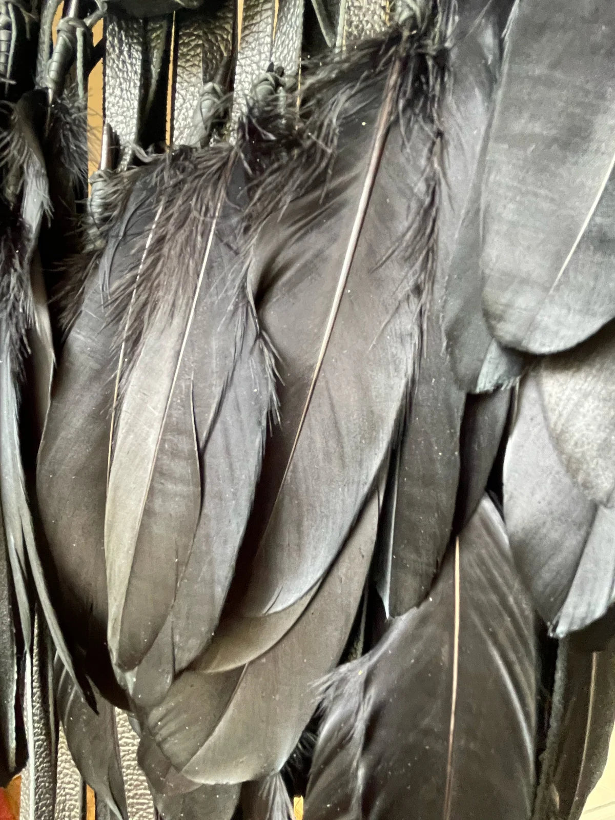 The bottom fringe and frame are decorated with goose feathers that are said to let the bad dreams that have been caught in the net drip down them to be burnt away with the morning light.