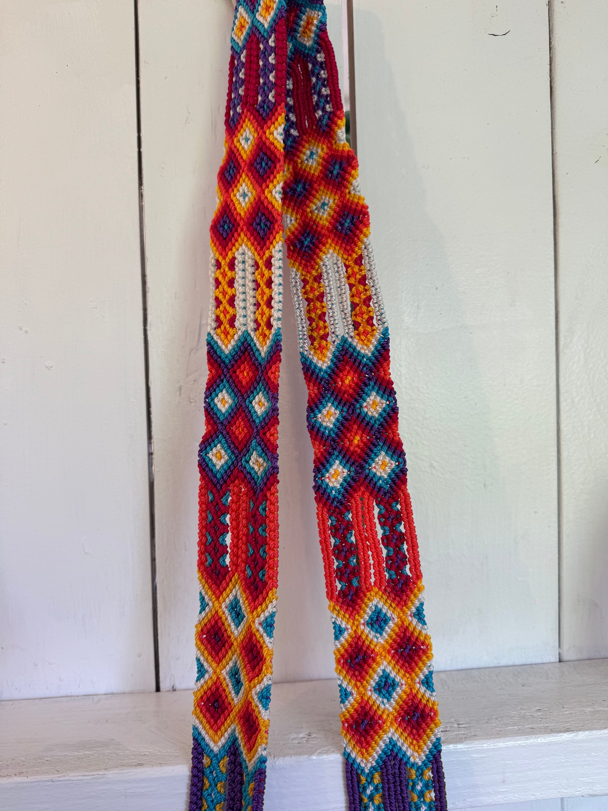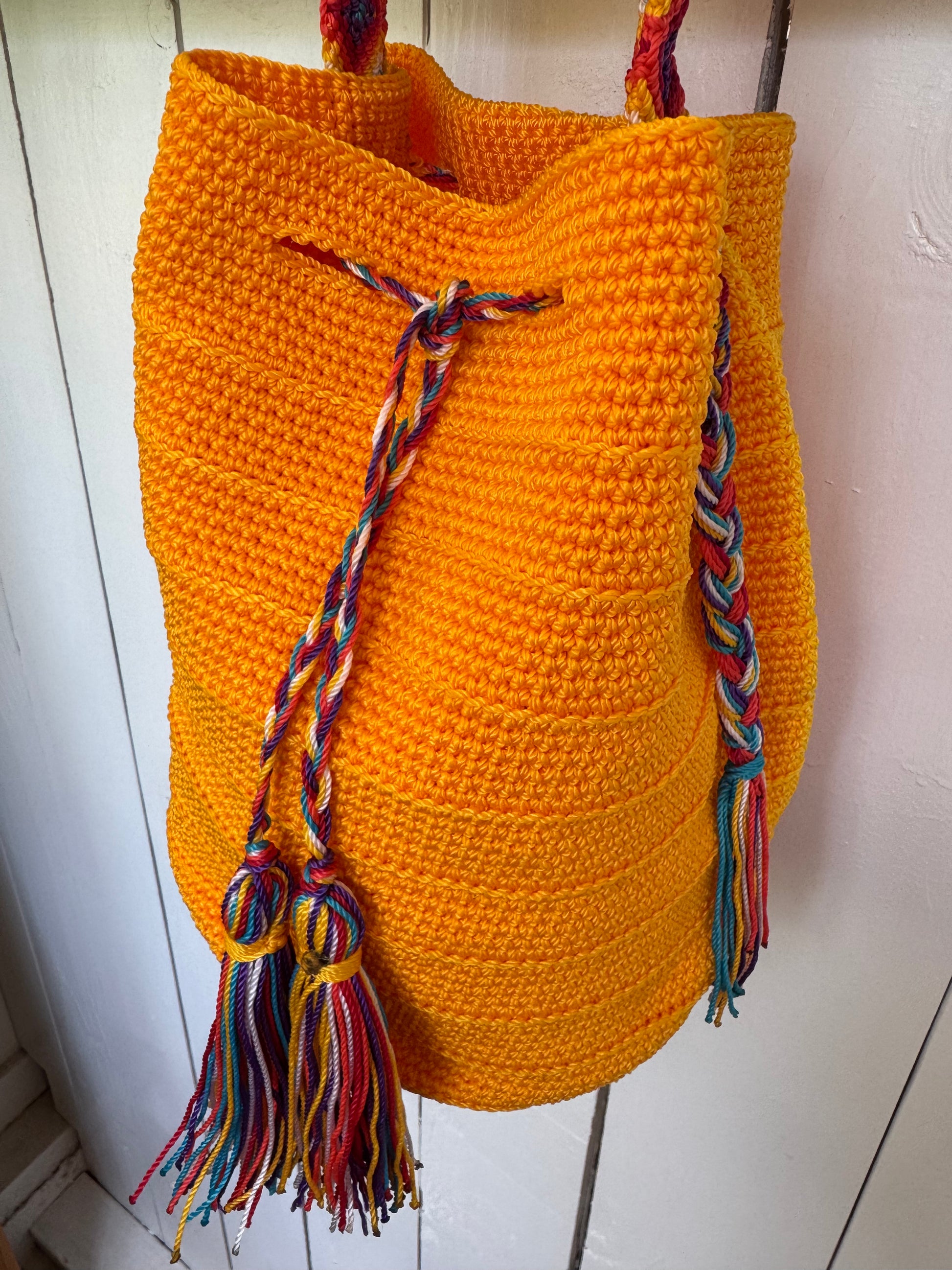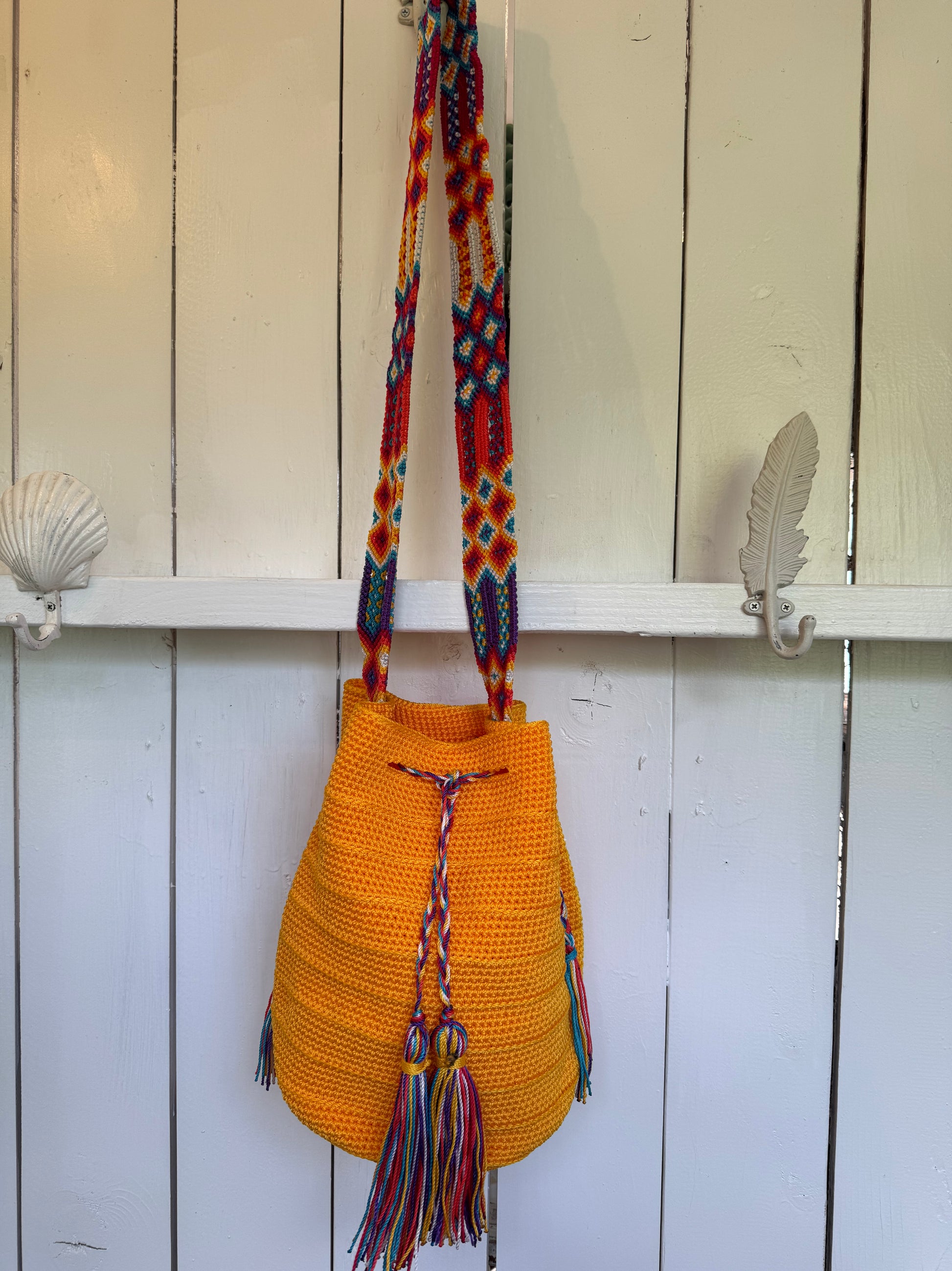 Mexican Handwoven Bucket Bag | Multi color Strap Tall Sunset Yellow