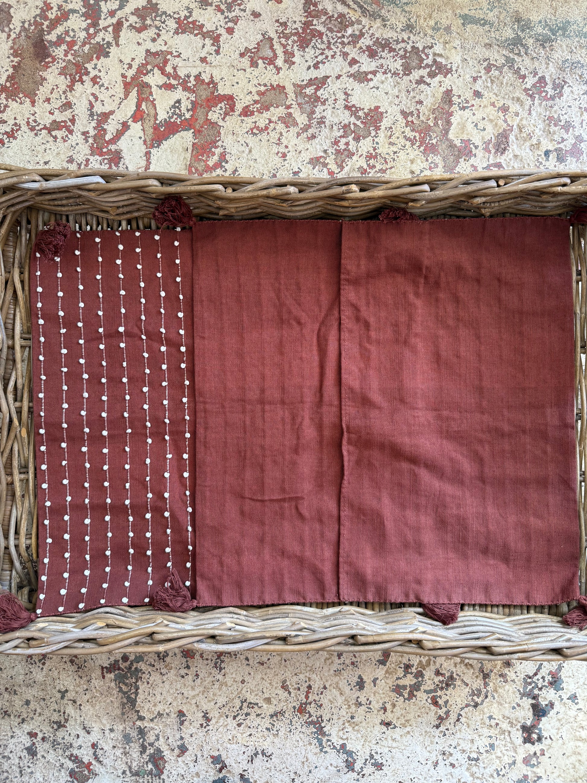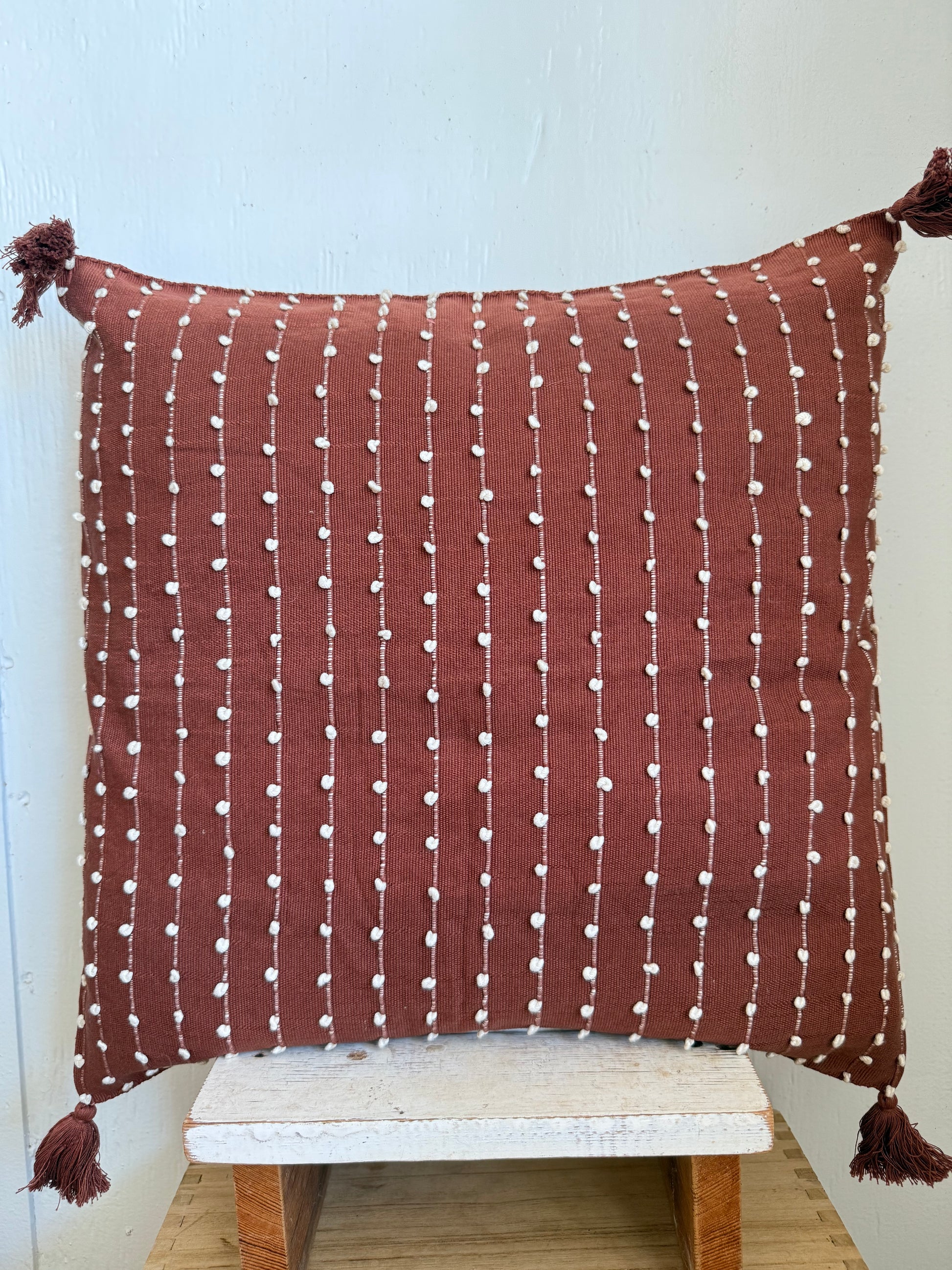 Mexican Handwoven Throw Pillow Cover Red Clay/ Cream Stripe