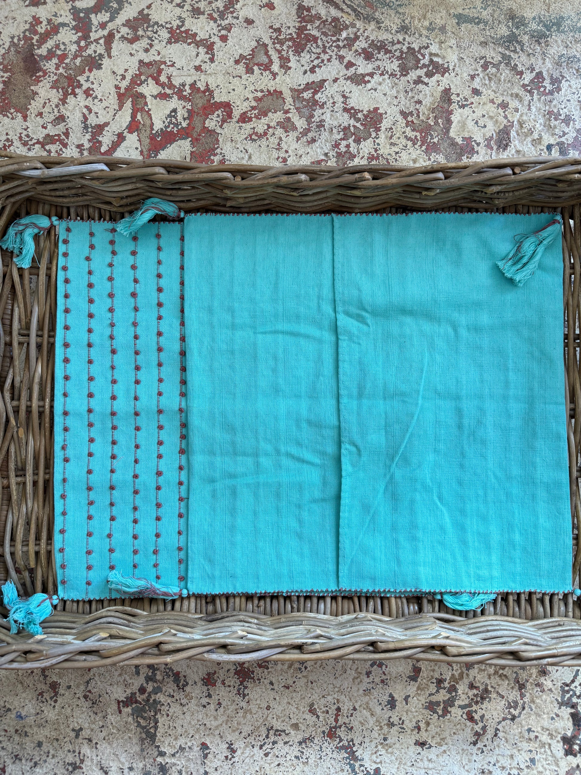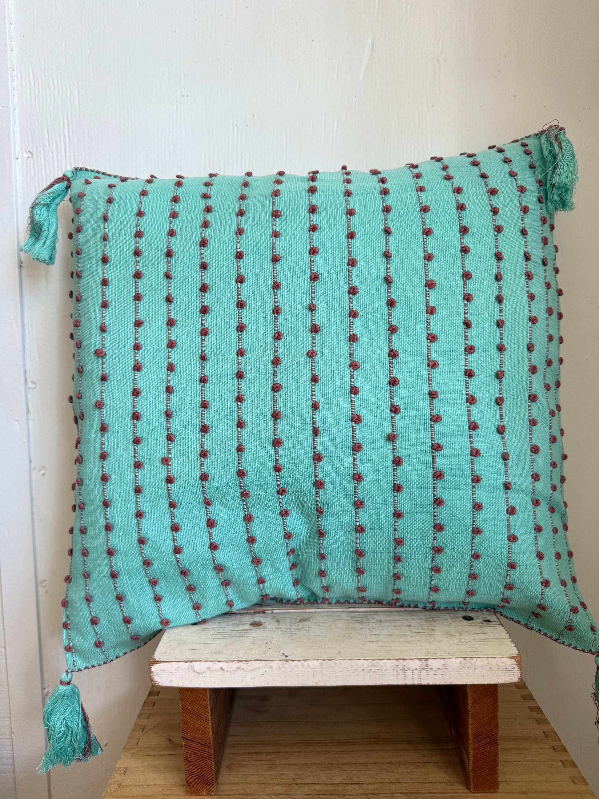 Mexican Handwoven Throw Pillow Cover Aqua/ Brown Stripe