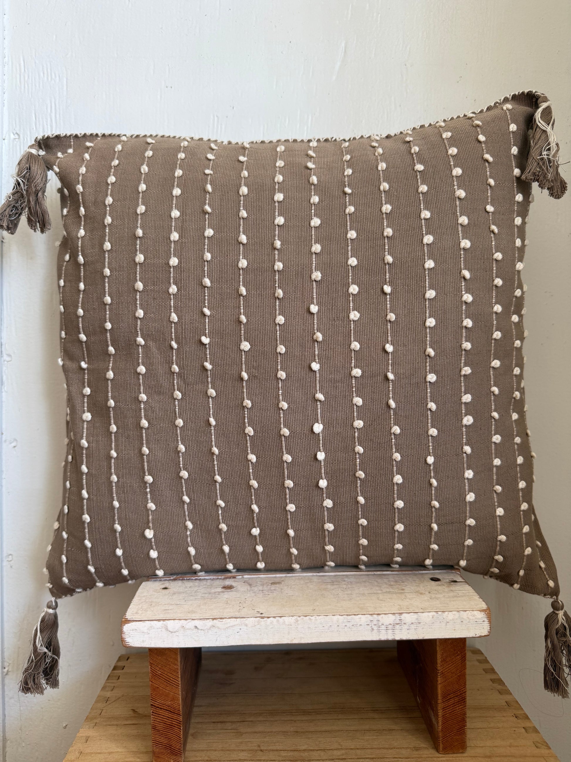 Mexican Handwoven Throw Pillow Cover Taupe/ Cream Stripe