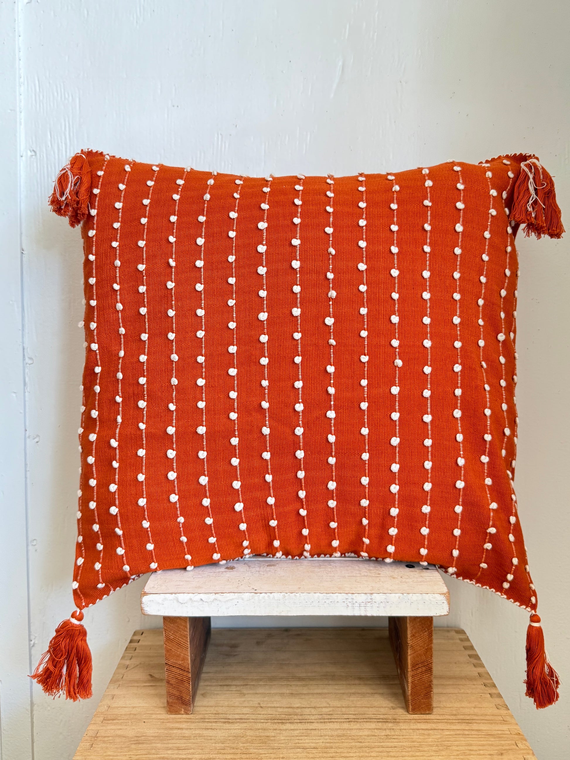 Mexican Handwoven Throw Pillow Cover Orange/ Cream Stripe
