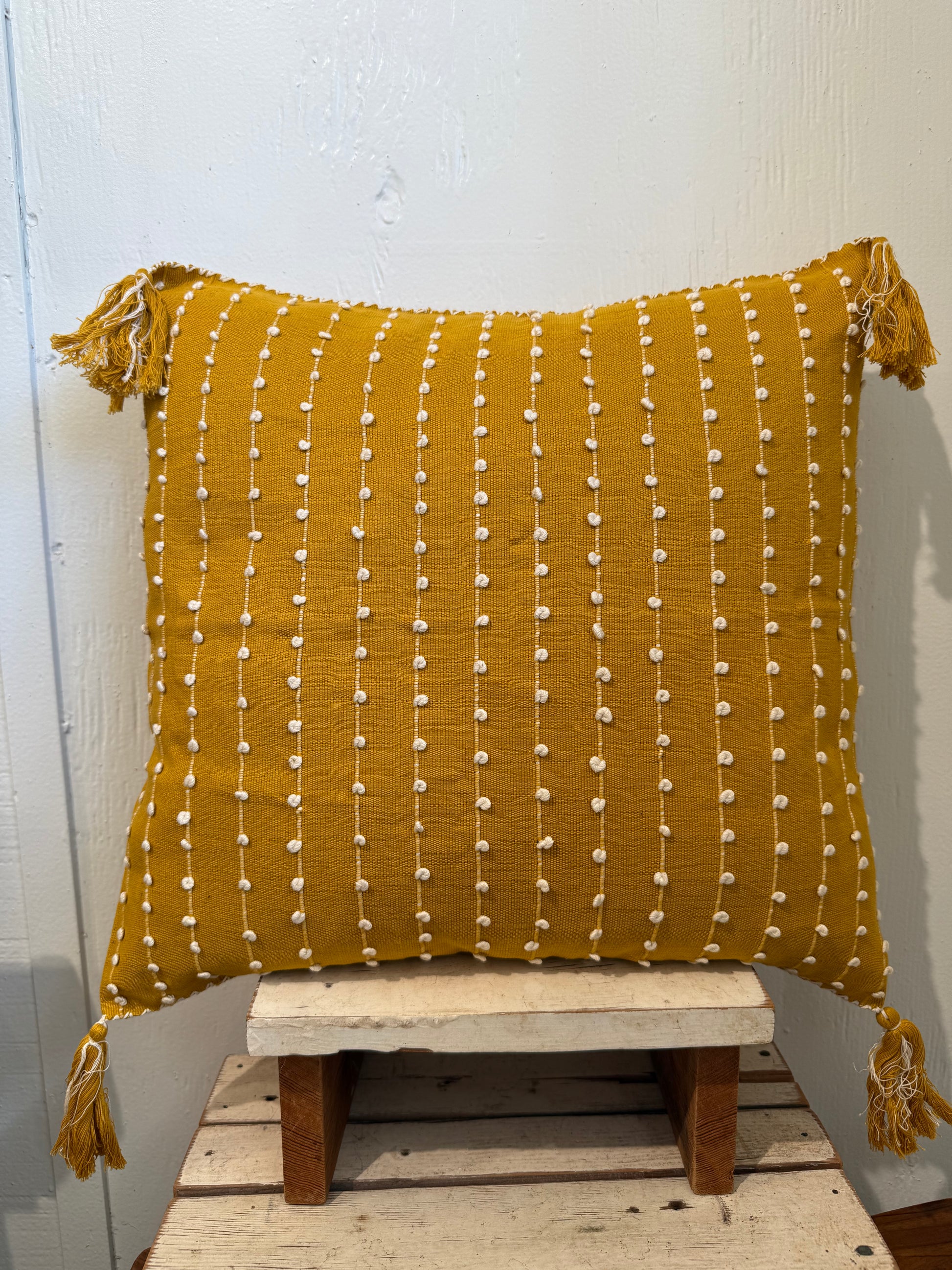 Mexican Handwoven Throw Pillow Cover Mustard/ Cream Stripe