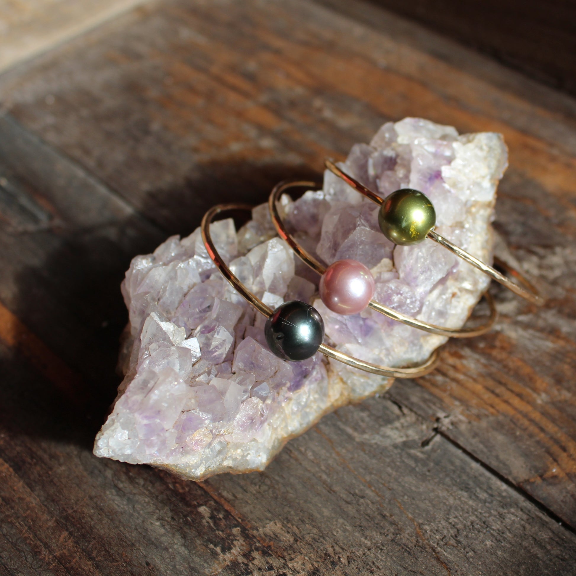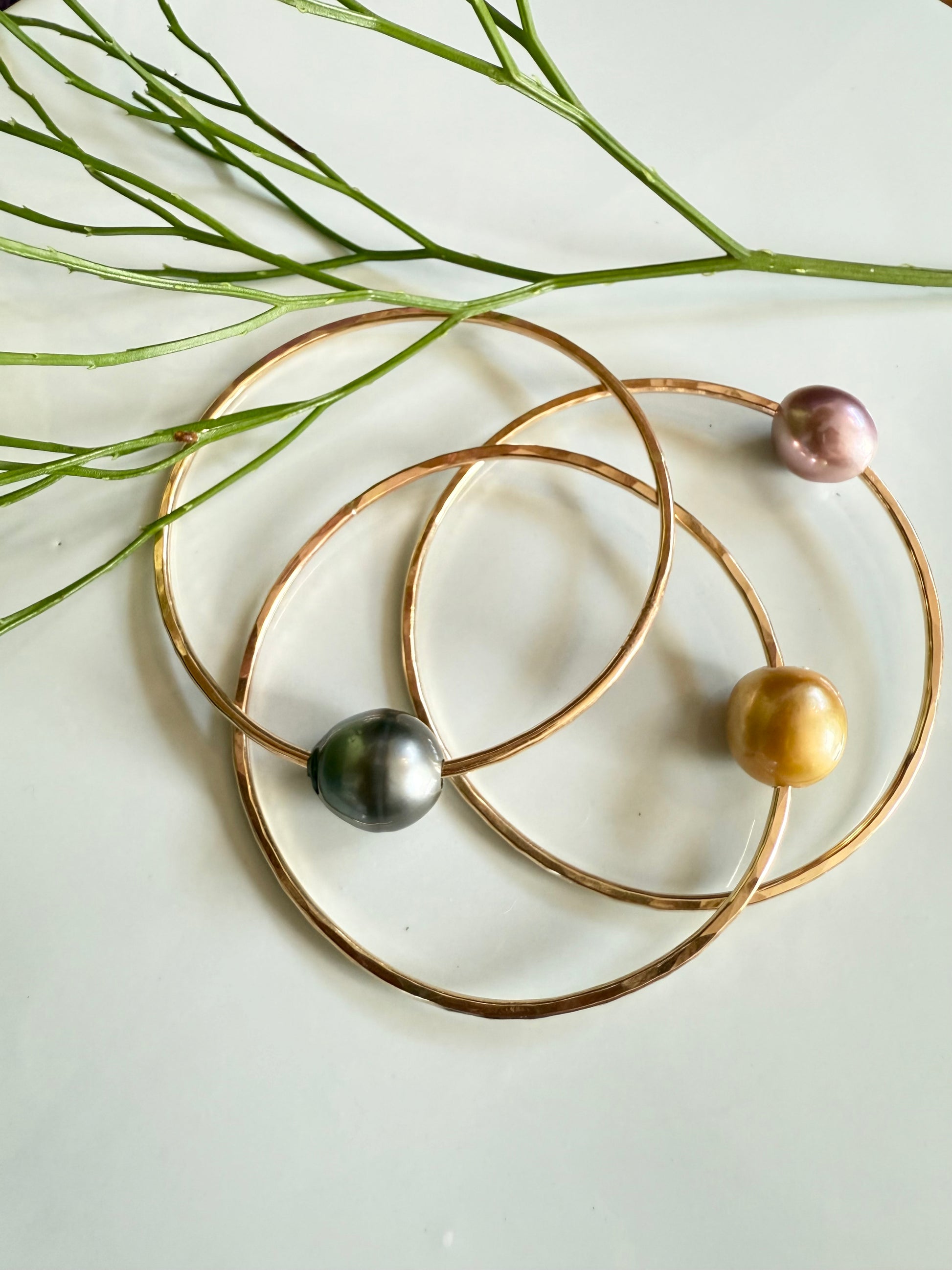 Assorted pearl on 14k gold filled bangle