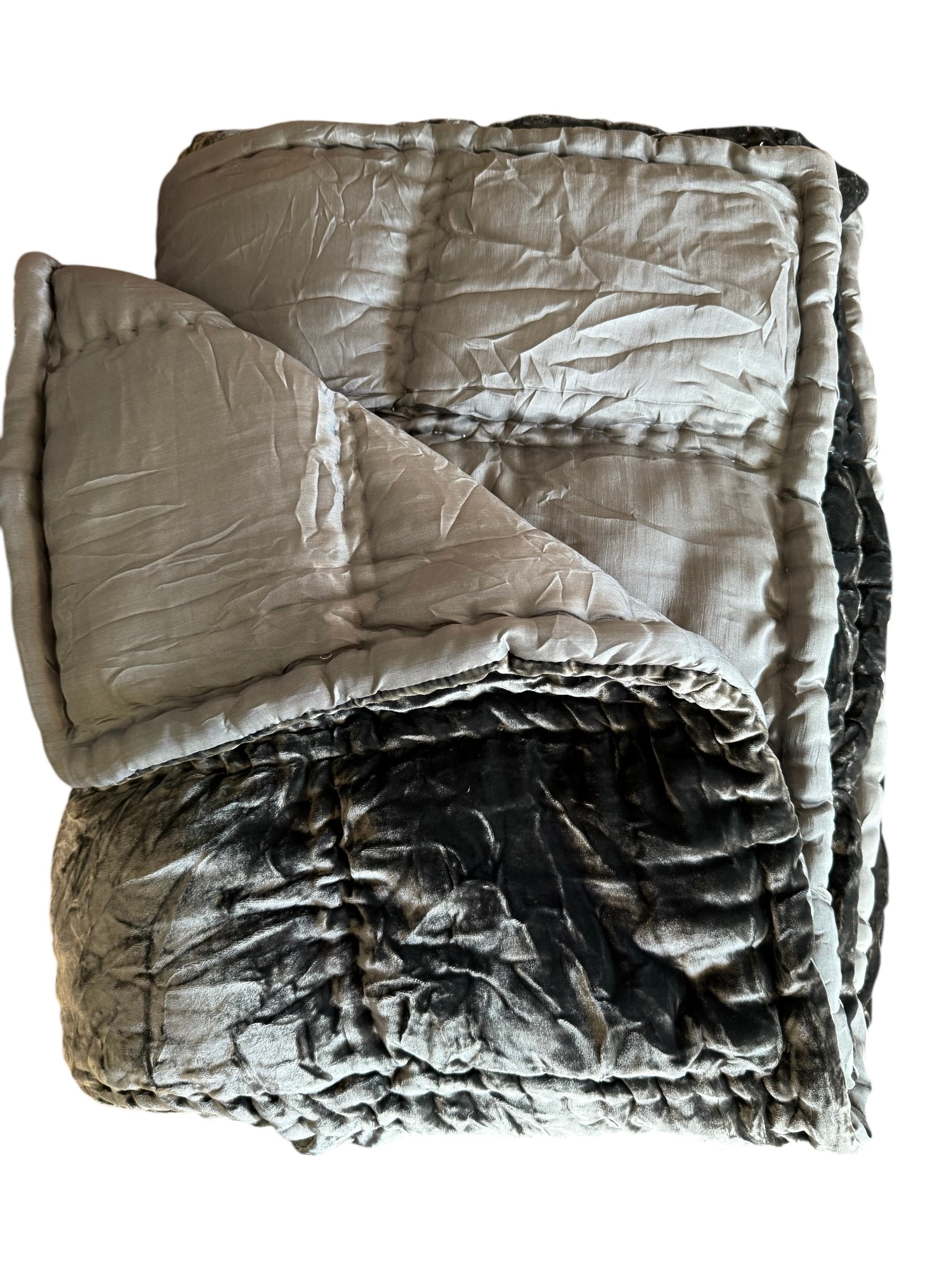 French luxury Silk and Velvet quilt with hand stitching, sure to keep you cozy on warm or chilly nights.