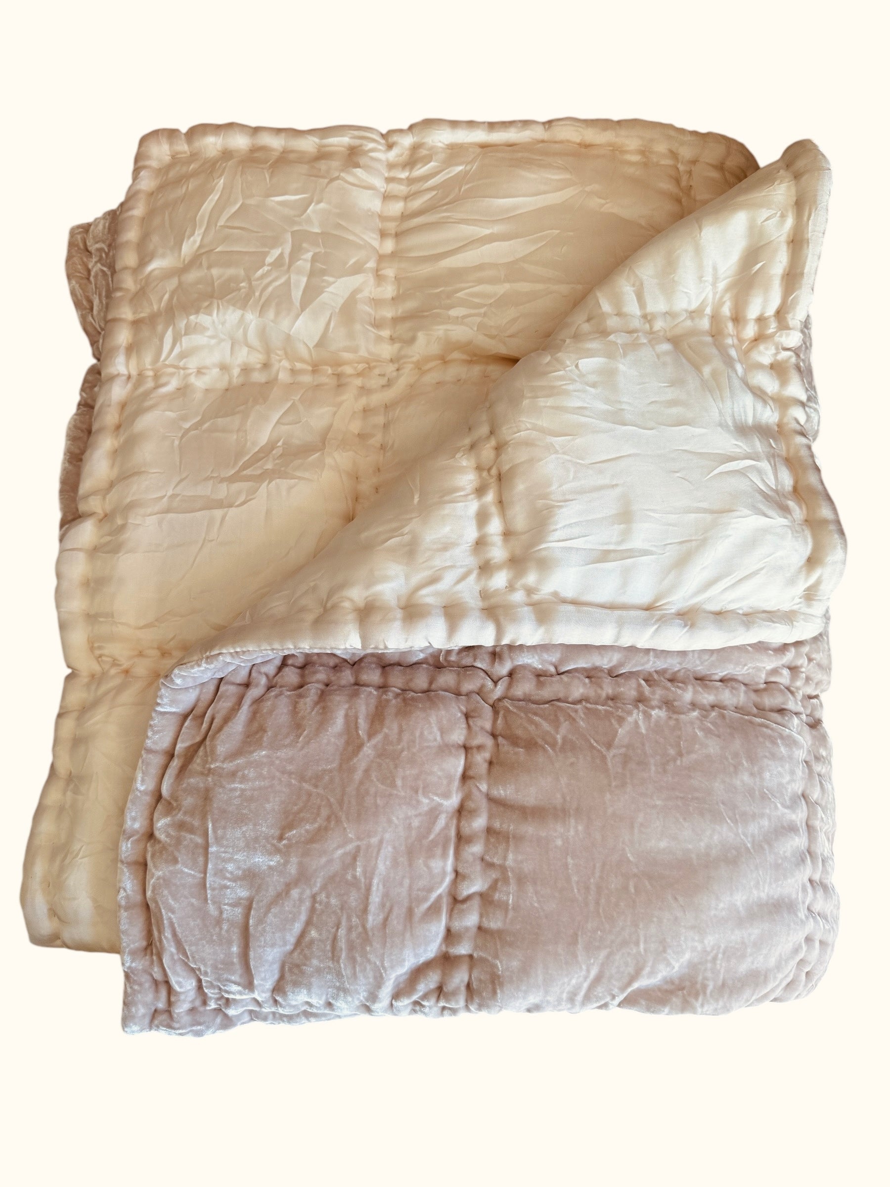 French luxury Silk and Velvet quilt with hand stitching, sure to keep you cozy on warm or chilly nights.